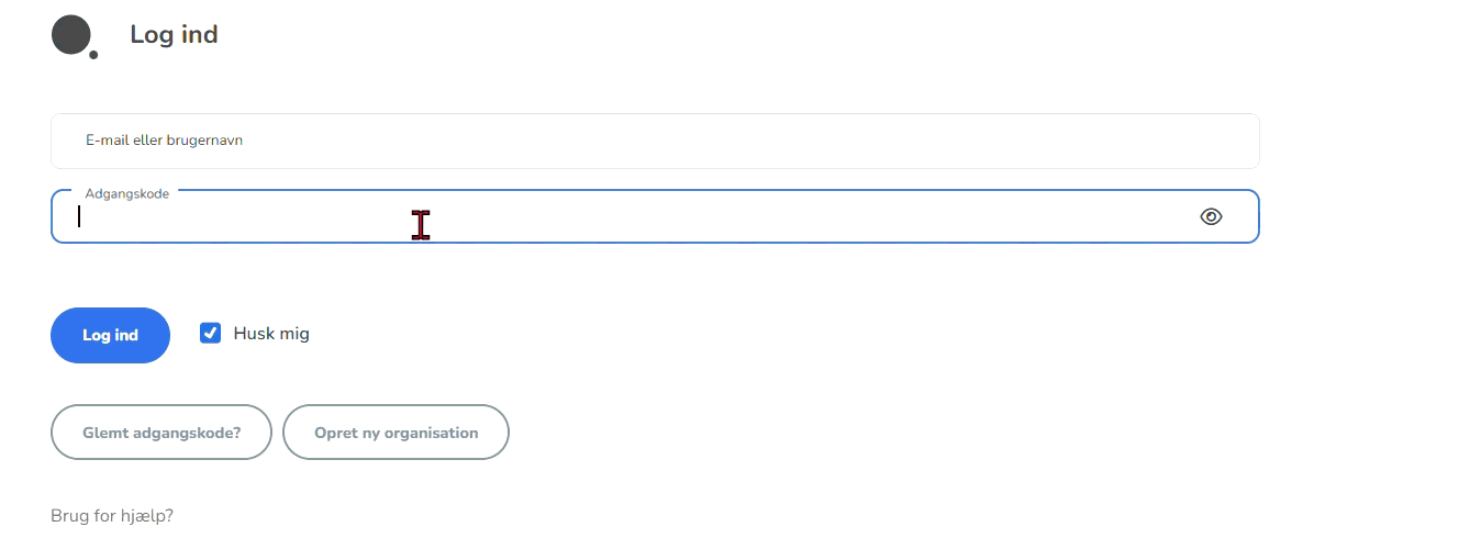 Klik på øje-ikonet til højre i adgangskodefeltet for at vise/skjule din adgangskode mens du skriver. Dette hjælper med at undgå tastefejl.