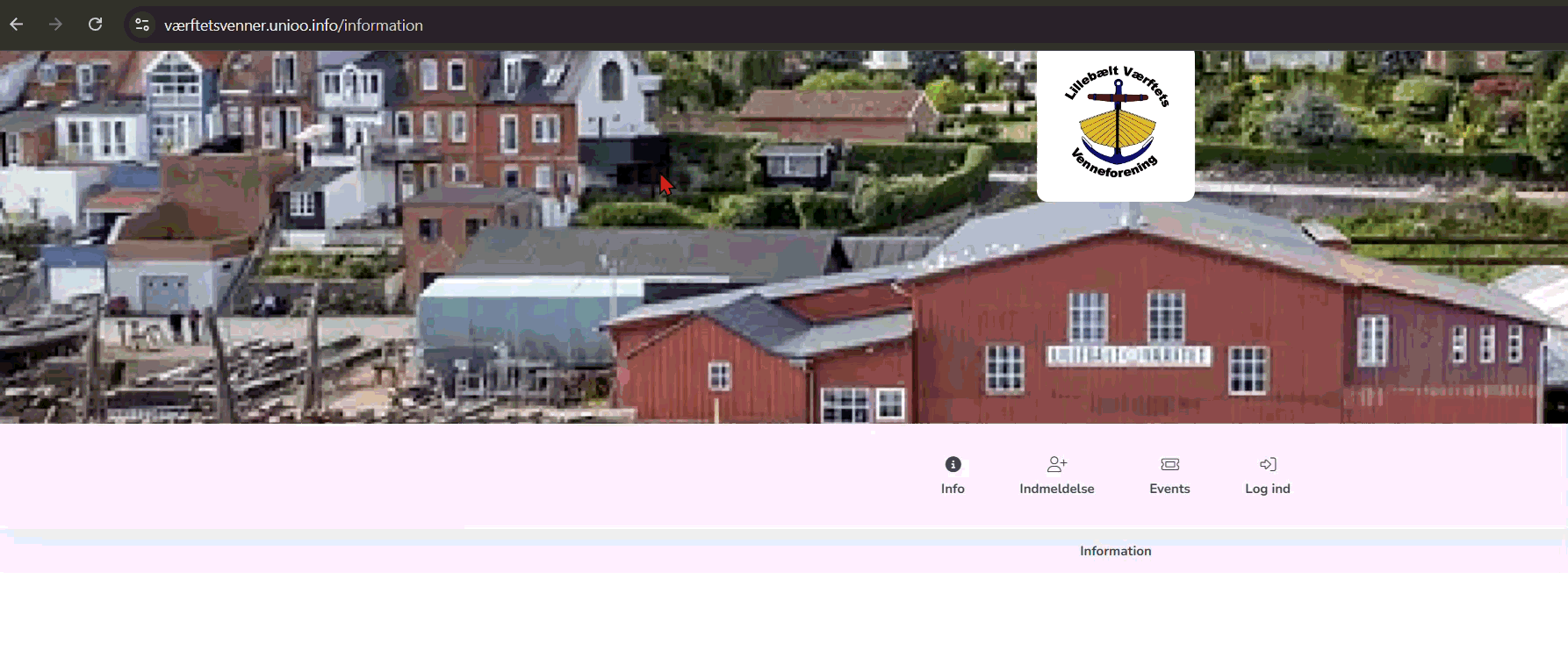 Hvis jeres events eller kontingenter ikke er synlige, kan det skyldes, at de ikke er tilføjet som menupunkter på den offentlige profil.